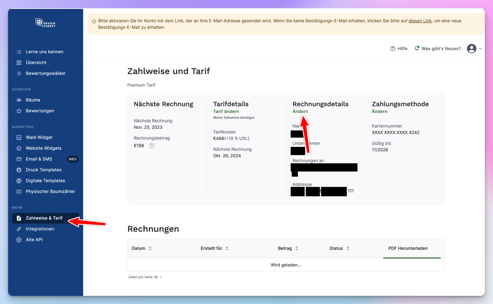 So ändert man die Rechnungsanschrift bei ReviewForest