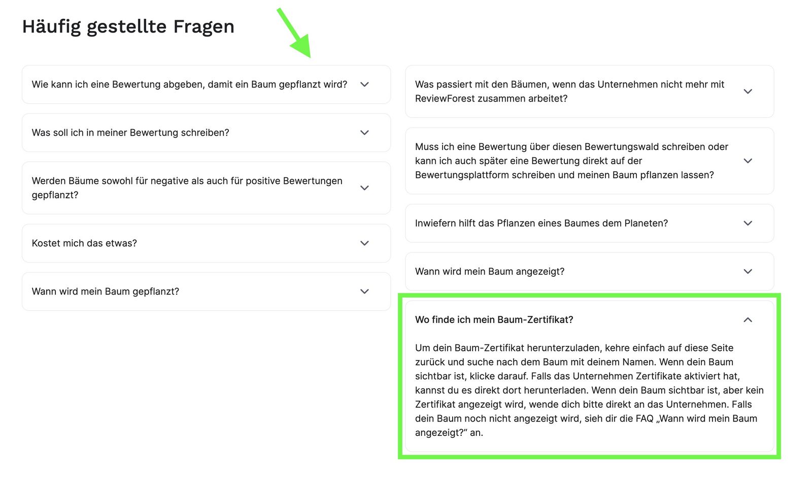 Wir haben bereits ein weiteren FAQ Punkt jedem Bewertungswald hinzugefügt, der dir bei der Kommunikation helfen soll.