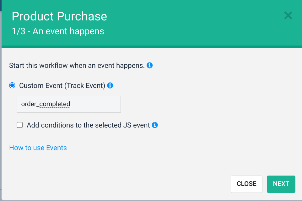 - In Sendinblue, click “Automation”, “Workflows”, “Create a workflow” and “Product Purchase”
